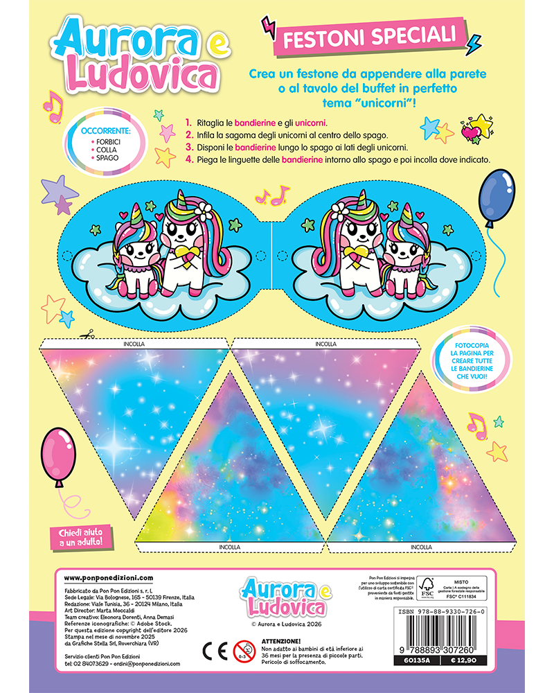 Aurora e Ludovica. Activity con gadget. Unicorni party + Cerchietto