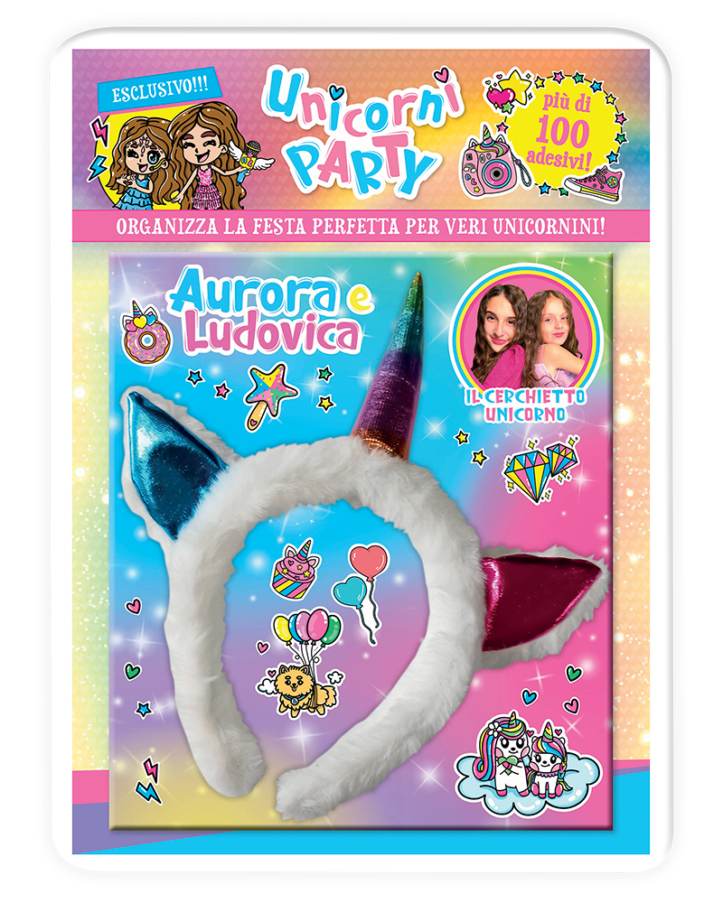 Preparati a fare festa insieme ad Aurora e Ludovica! In questo activity book troverai tantissime idee per organizzare il tuo "Unicorni party" da sogno. In regalo gli sticker e l'esclusivo cerchietto unicorno.