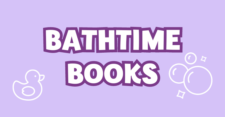 A colorful little boat to play with in the bathtub. A plastic book floating on board.