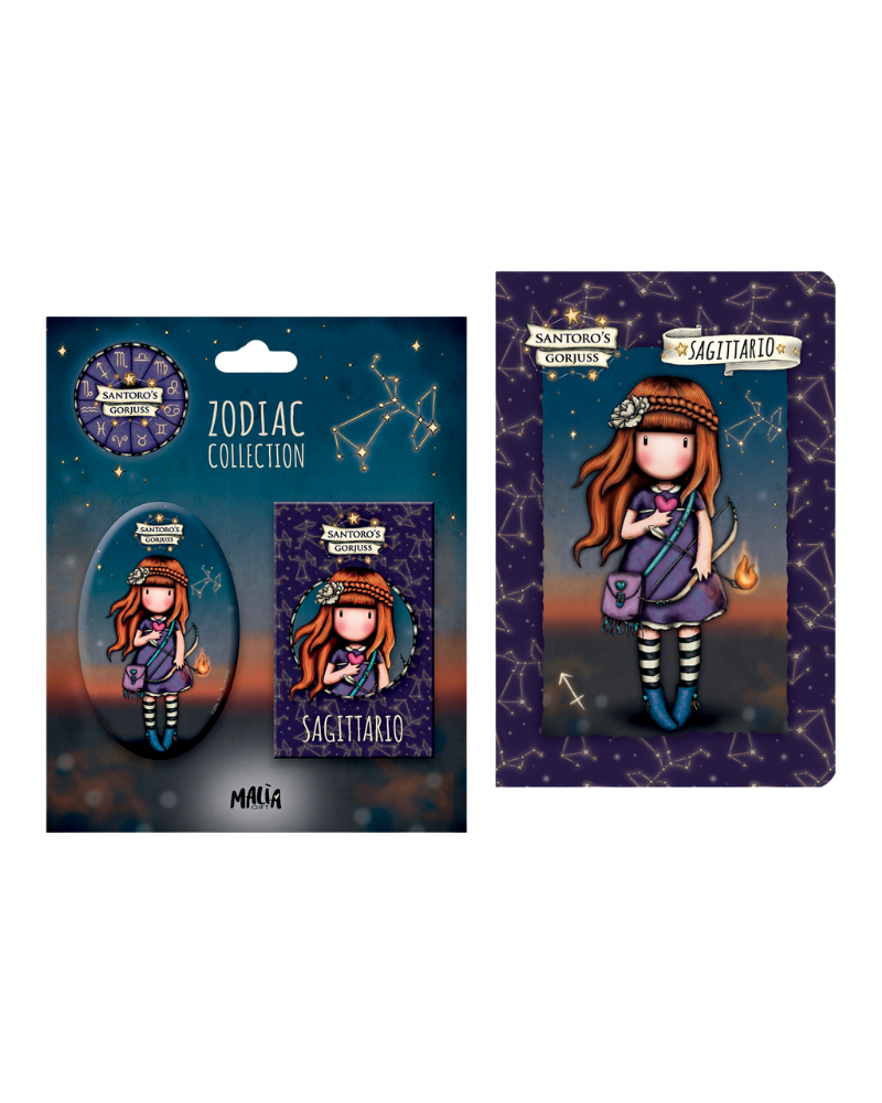 Un’incantevole Gift Box tutta dedicata al segno zodiacale dello Sagittario. Contiene due pezzi della Zodiac Collection firmata Santoro’s Gorjuss: la calamita con l’inconfondibile illustrazione del segno, per portare un pizzico di magia a casa o in ufficio, e un libro per scoprire misteri e meraviglie dello zodiaco. Una collezione poetica e originale, da regalarsi o regalare, per guardare al cielo stellato e farsi ispirare dalle ragazze Gorjuss.