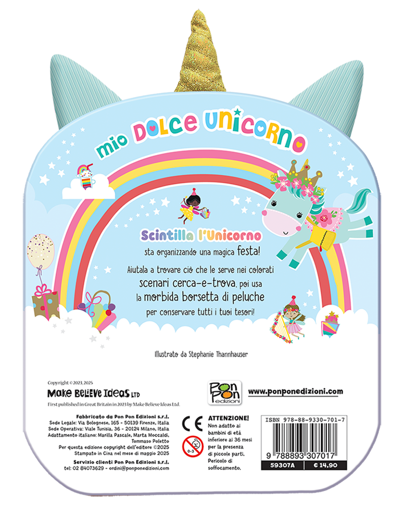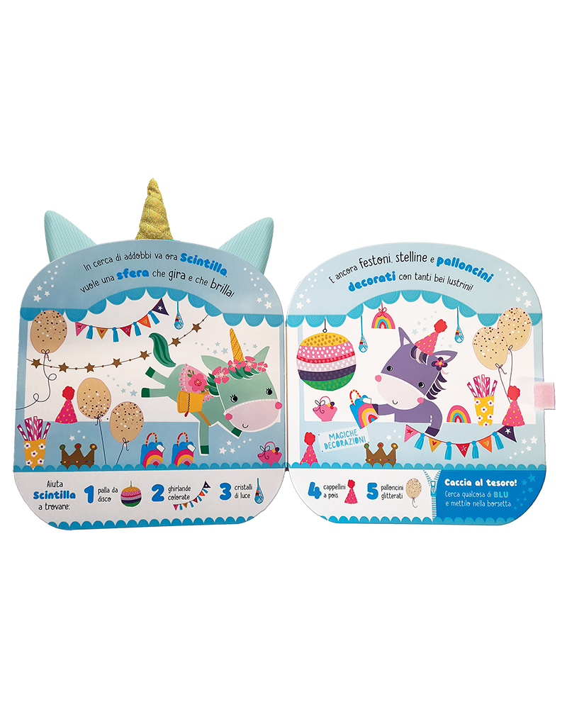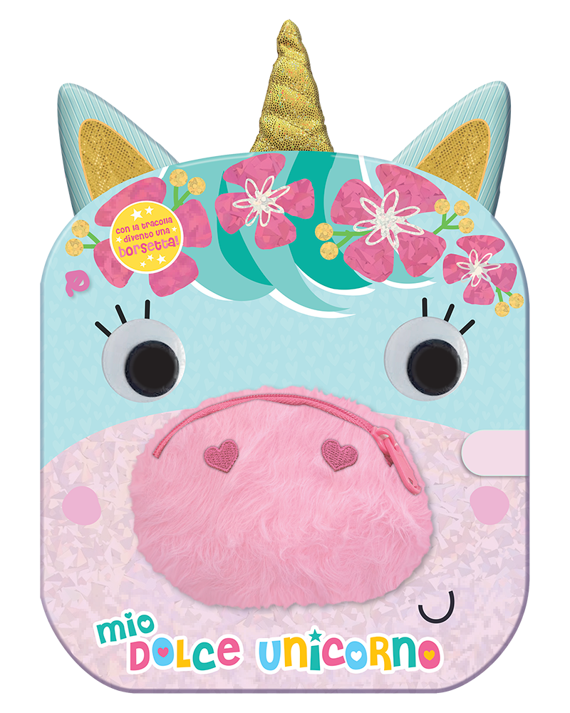 Scopri il Libro Borsetta di Scintilla, il tuo dolce unicorno! Tra le pagine una tenera filastrocca e tante attività cerca-e-trova, e grazie alla pratica tracolla inclusa il libro diventa una borsetta da portare sempre con te. Inoltre, il naso dell'unicorno è una pochette con cerniera, in cui tenere tutti i tuoi tesori.