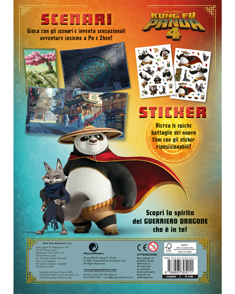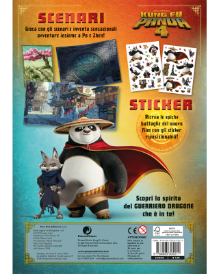Po è il Guerriero Dragone, il mitico maestro di Kung Fu che non teme nulla... tranne le scale! Scopri lo scenario sticker con gli adesivi che si attaccano e si staccano e tante altre sorprese per diventare un maestro di Kung Fu!