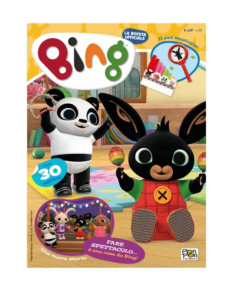 BING ti aspetta in edicola! Il tenero coniglietto e tutta la banda dei suoi amici ti aspettano ogni mese con nuove avventure, tanti giochi, adesivi e un bellissimissimo gioco!