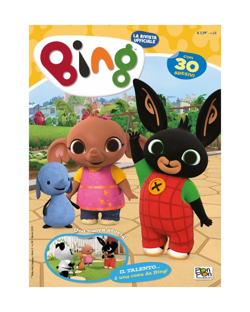 BING ti aspetta in edicola! Il tenero coniglietto e tutta la banda dei suoi amici ti aspettano ogni mese con nuove avventure, tanti giochi, adesivi e un bellissimissimo gioco!