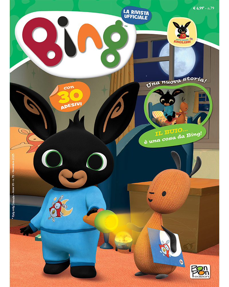 BING ti aspetta in edicola! Il tenero coniglietto e tutta la banda dei suoi amici ti aspettano ogni mese con nuove avventure, tanti giochi, adesivi e un bellissimo gioco a sorpresa*... IL GIOCO DELLE FORME o L'OROLOGIO DI BING! *Il gadget in omaggio con il magazine viene selezionato casualmente tra le due opzioni.