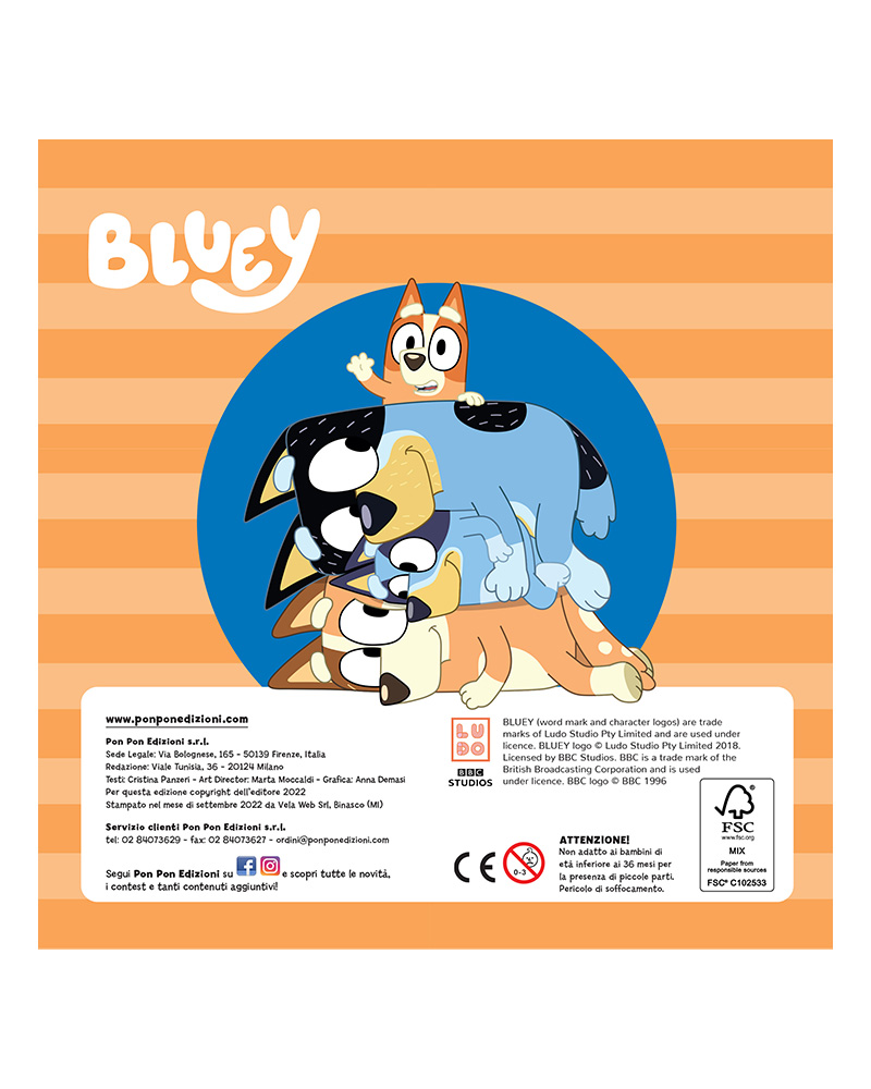 Bluey e la sua sorellina Bingo si divertono un mondo insieme a Mamma e Papà! Colora le loro avventure con il magico pennarello svelacolore. È sicuro e atossico: basta passarlo sui disegni per rivelare ogni sfumatura! In più, in regalo le buffe marionette di Bluey e famiglia da ritagliare.