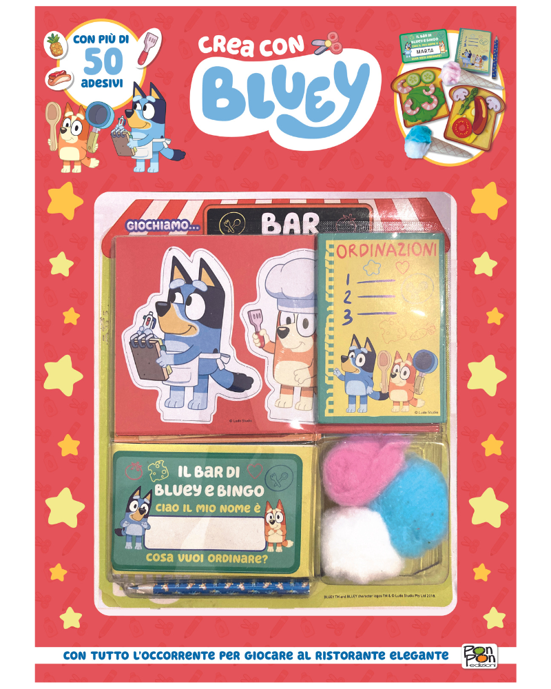 Libera la creatività con le tante creazioni racchiuse in questo albo! Costruisci il teatrino di Bluey e crea coloratissimi craft per decorare il tuo teatrino. Con tanti adesivi per renderli ancora più speciali!
