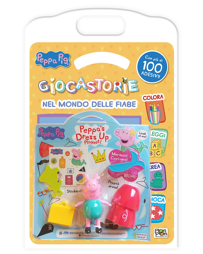 Entra nel magico mondo delle fiabe insieme a Peppa! In questo activity book sagomato troverai una storia da leggere, tanti giochi e attività divertenti da completare, e più di 100 adesivi! In regalo il playset dei vestitini di Peppa!