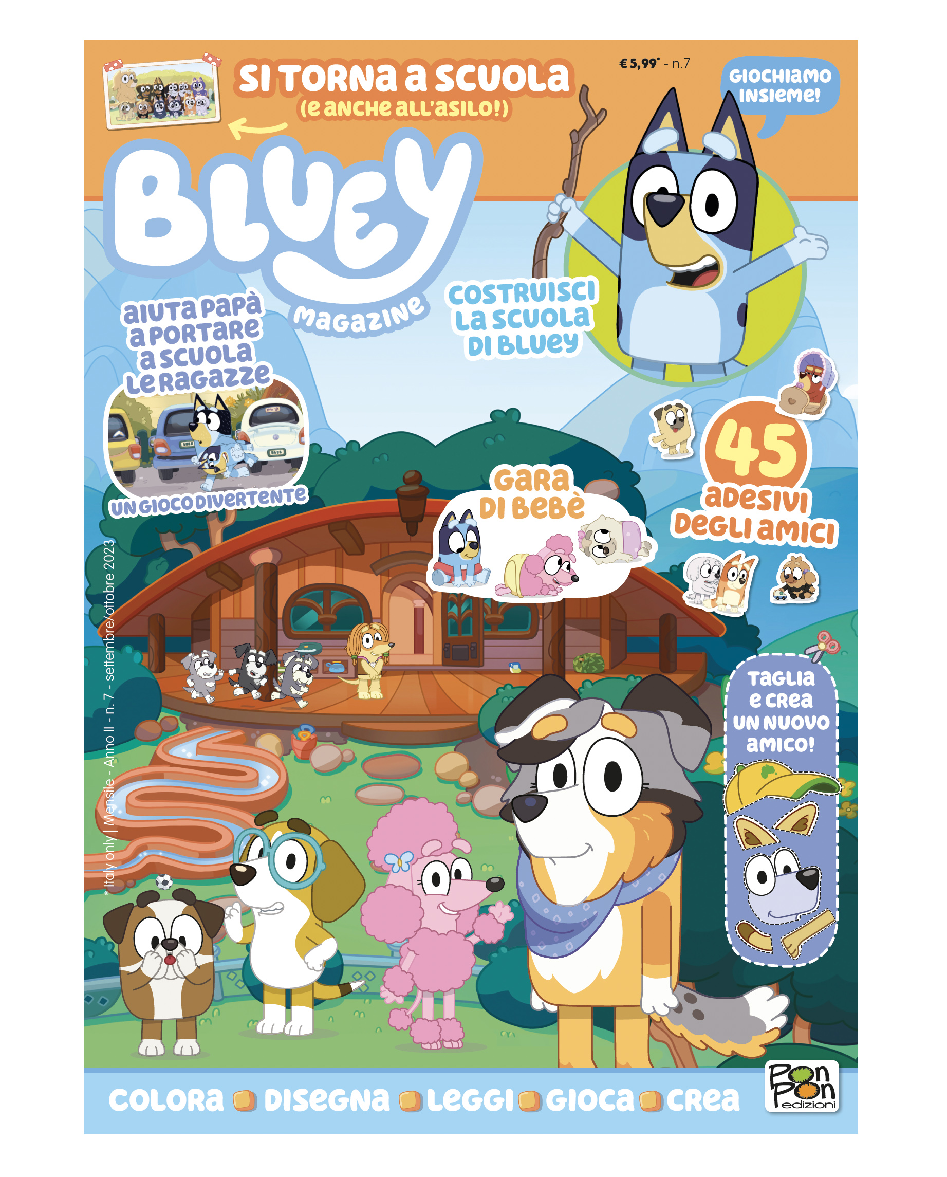 Arriva in edicola il magazine di Bluey, la serie fenomeno dell’anno: pagine da colorare, giochi, craft e sticker per stimolare la creatività e divertirsi insieme a Bluey, alla sua sorellina Bingo e alla loro famiglia. In regalo con la sesta uscita il Pizza Set!
