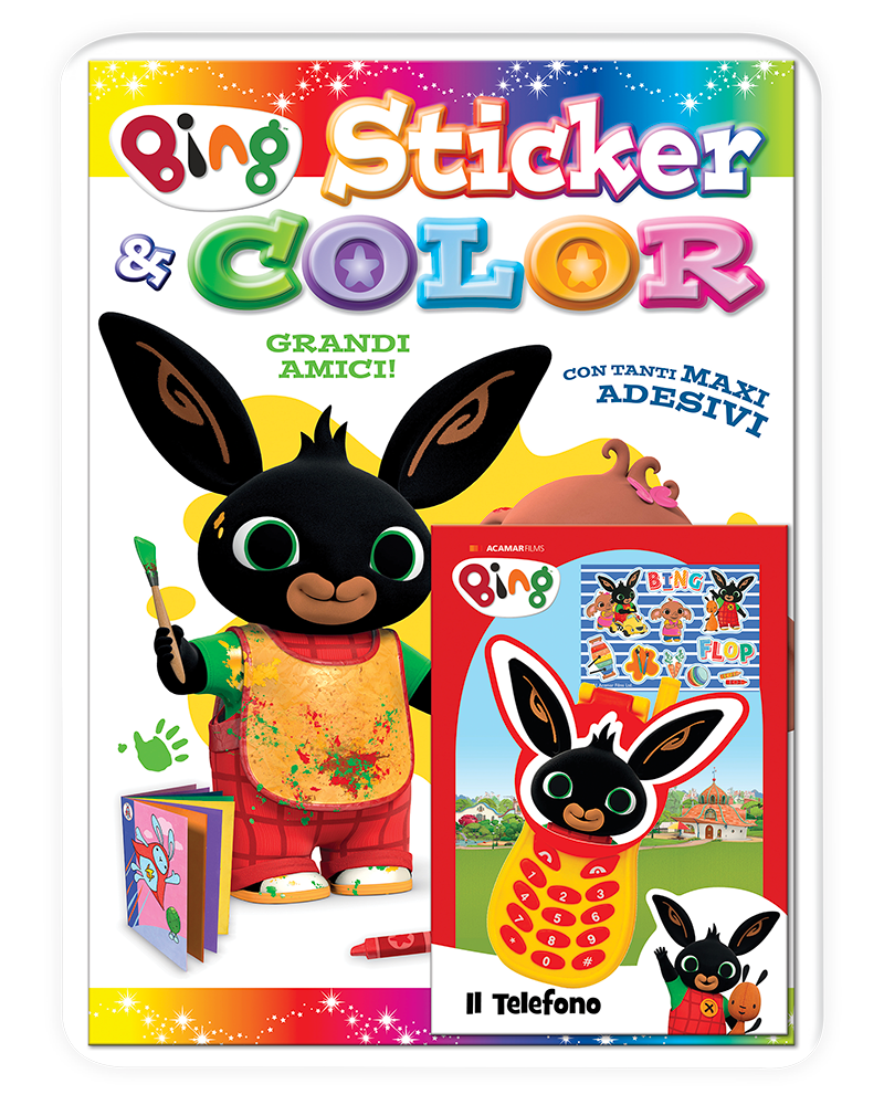 Tanti disegni da colorare e 50 maxi sticker per divertirsi insieme a Bing, Sula e i loro amici. In regalo il telefono di Bing!