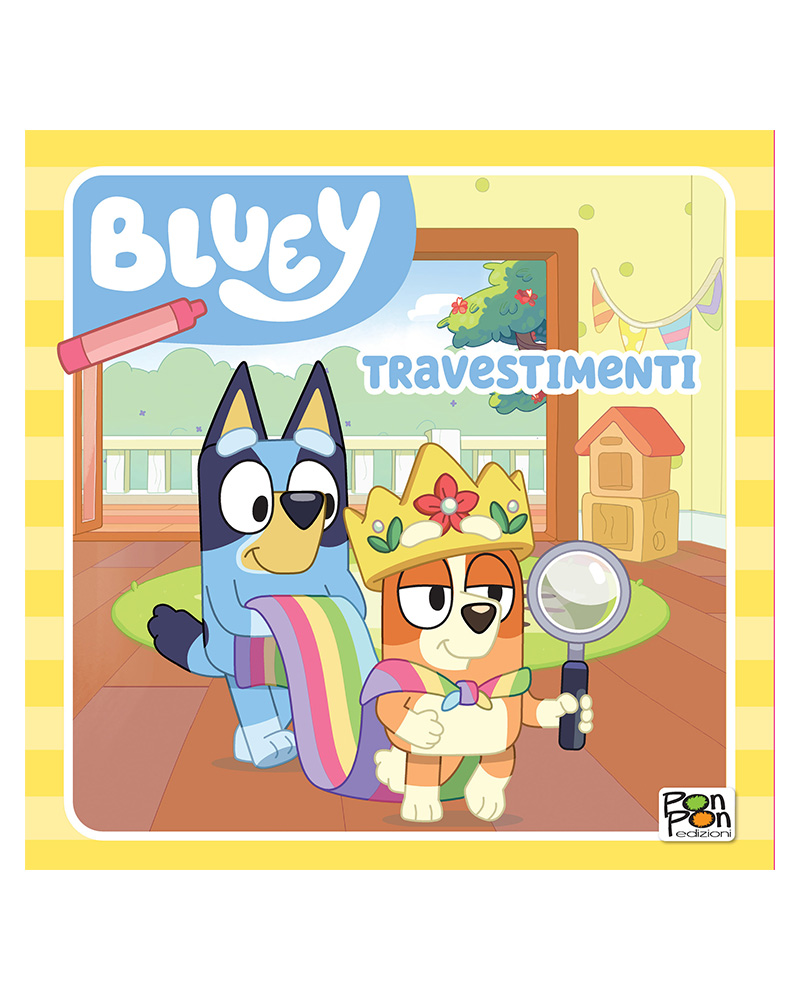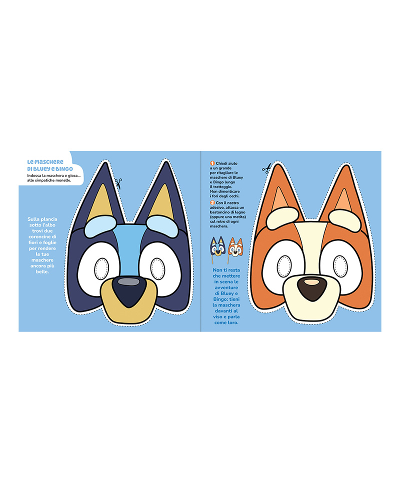 Divertiti con i buffi travestimenti di Bluey: somigli più a una vecchina o a un pilota? Colora l'albo con il pennarello magico: è atossico, sicuro e non macchia. In regalo il dado delle sfide da ritagliare.