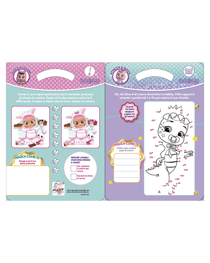Il mondo delle Cry Babies ti attende! Divertiti con le creazioni, i giochi e i coloring che troverai all'interno di questo dolcissimo Activity Book delle Cry Babies Magic Tears e completa le pagine con i colorati sticker! In più potrai costruire la maschera di Dreamy!