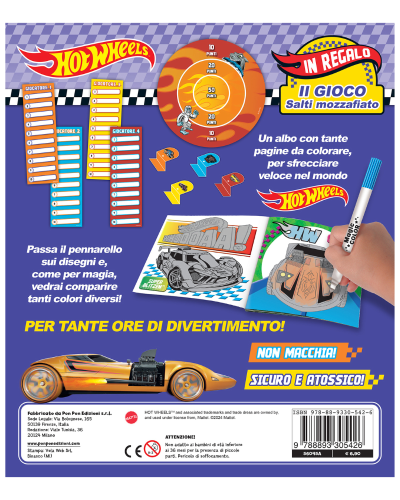 Avventure adrenaliniche con le Hot Wheels! Passa il pennarello sui disegni e, come per magia, vedrai comparire tanti colori diversi! La penna magica non macchia, è sicura e atossica.