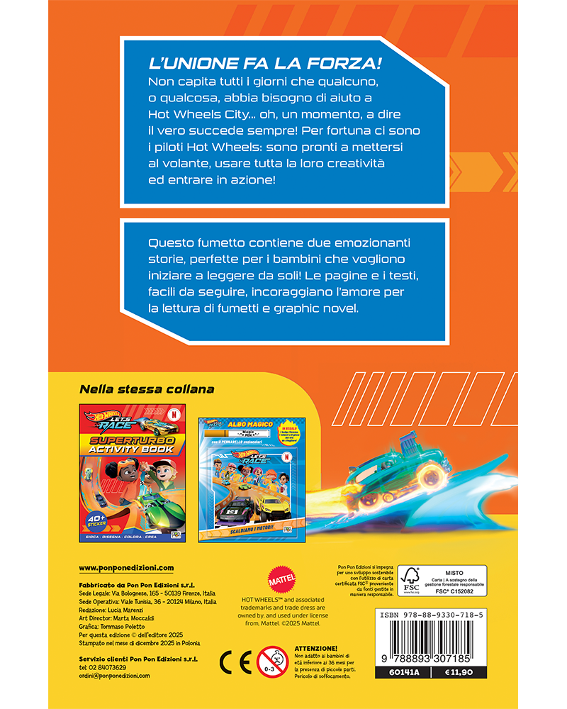 Ogni volta che Hot Wheels City ha bisogno di aiuto… ecco che arrivano i piloti Hot Wheels, sempre pronti all’azione! Questo fumetto contiene due episodi della serie, raccolti in due storie ricche di emozioni, macchine scintillanti e corse mozzafiato. Coloratissime e facili da seguire, le avventure dei piloti Hot Wheels sono perfette per i bambini che vogliono iniziare a leggere da soli!