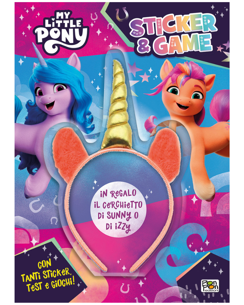 Segui il tuo brillio insieme ai My Little Pony! Un albo ricco di attività, test e sticker per vivere la magia di Equestria. In regalo il favoloso cerchietto di Sunny o Izzy: scegli il tuo preferito!