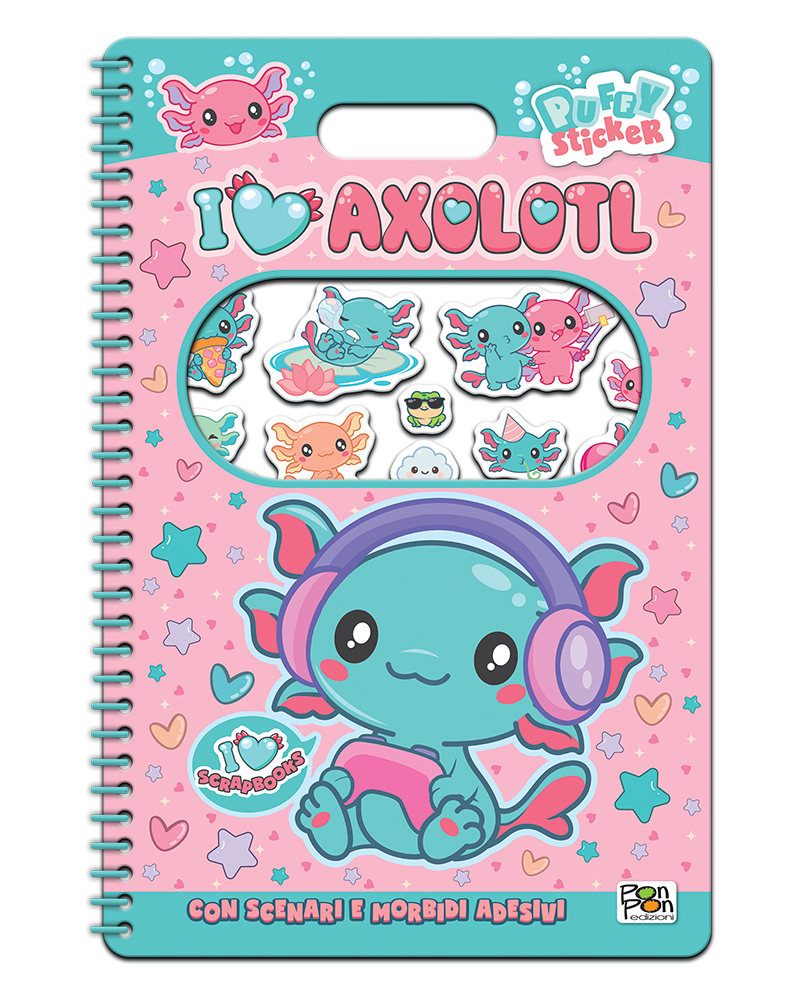 Morbidi stickers e un libretto con divertenti giochi e attività.